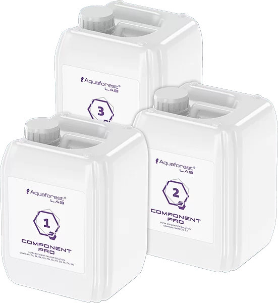 Dosagem: Todos os fluidos devem ser dosados igualmente com base no consumo de Ca, KH e Mg. Teste regularmente sua água e estabeleça a dose ideal com base nos resultados da análise. Com estoque médio de corais SPS, a dose recomendada do Components Pro é de 12 ml por 100 litros de água diariamente. Quando os parâmetros da água não estiverem na faixa recomendada, use um dos aditivos Aquaforest Lab (Ca Plus, Mg Plus, KH Plus) até atingir os níveis desejados. O Componente 1 Pro contém: Ca, Sr, Fe, Mn, Cu, Zn, Ni, Cr, Co, Mo (25 ml / 100 l aumenta o Ca em 9 ppm). O Componente 2 Pro contém: HCO3-, F, I (25 ml / 100 l aumenta o KH em 1,3 dKH – Alk 0,46 meq / l). O componente 3 Pro contém: sais minerais, Mg, S, K, B, Sr, Li (25 ml / 100 l aumenta o Mg em 0,76 ppm). Devido à alta concentração do produto, recomendamos a manutenção regular das linhas de dosagem.