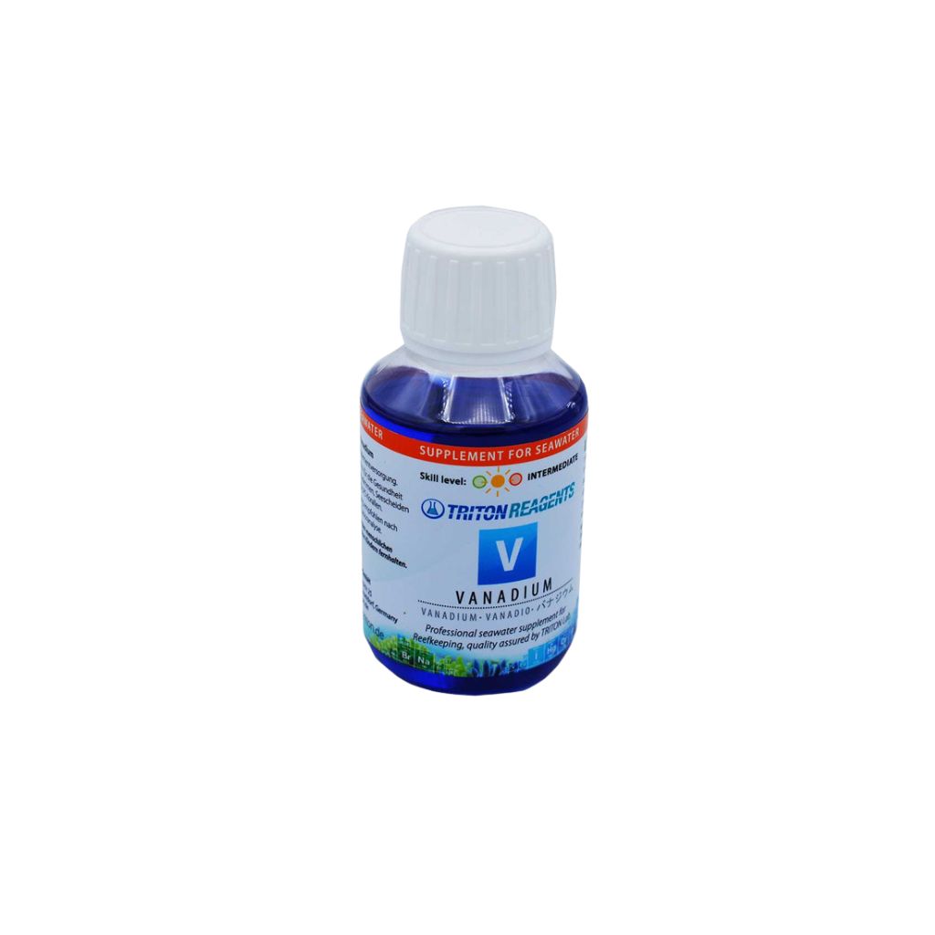 O Vanadium da Triton é um suplemento especializado desenvolvido para repor e manter os níveis adequados de vanádio em aquários de recife. Este oligoelemento desempenha um papel fundamental no metabolismo marinho, sendo essencial para a saúde e crescimento dos corais. Como parte da metodologia Triton, o Vanadium permite um controlo preciso dos parâmetros químicos, garantindo um ambiente estável e equilibrado.